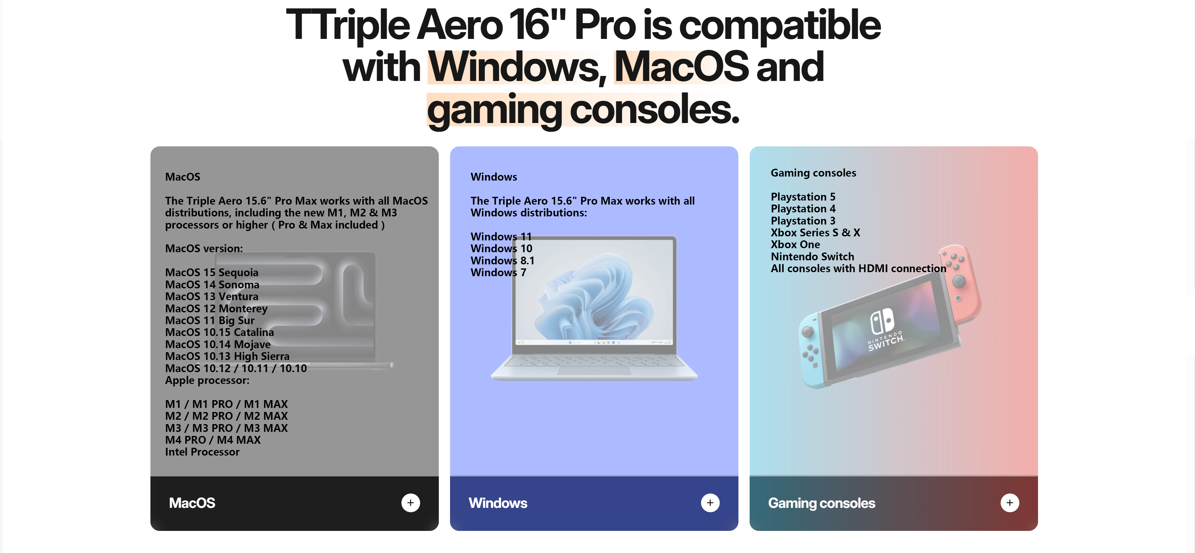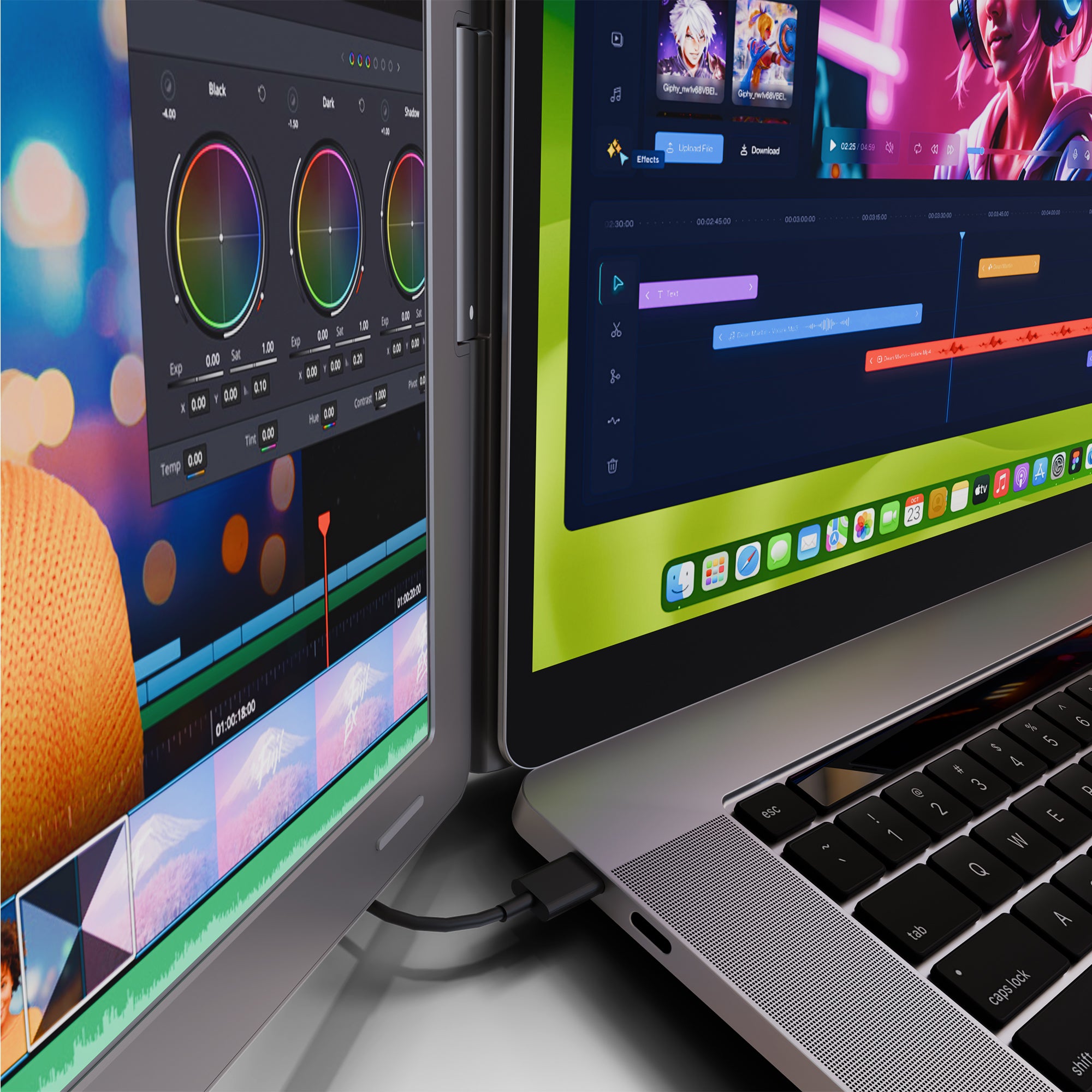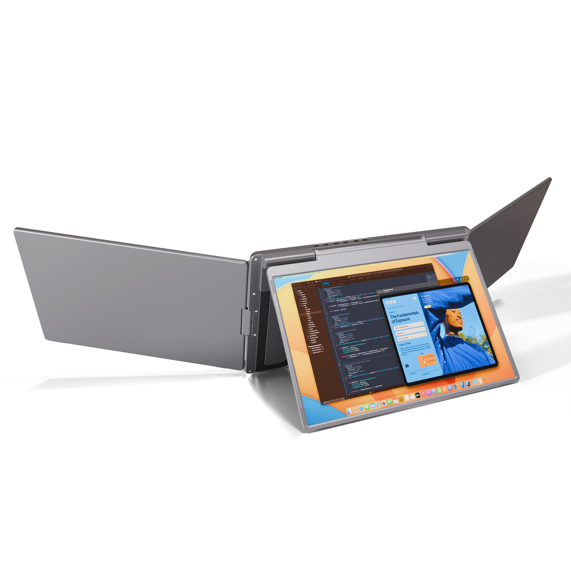 TriCreate features a lightweight aluminum body and three foldable 16-inch 1920×1200 IPS displays, expanding your screen space threefold with just a single USB-C connection.