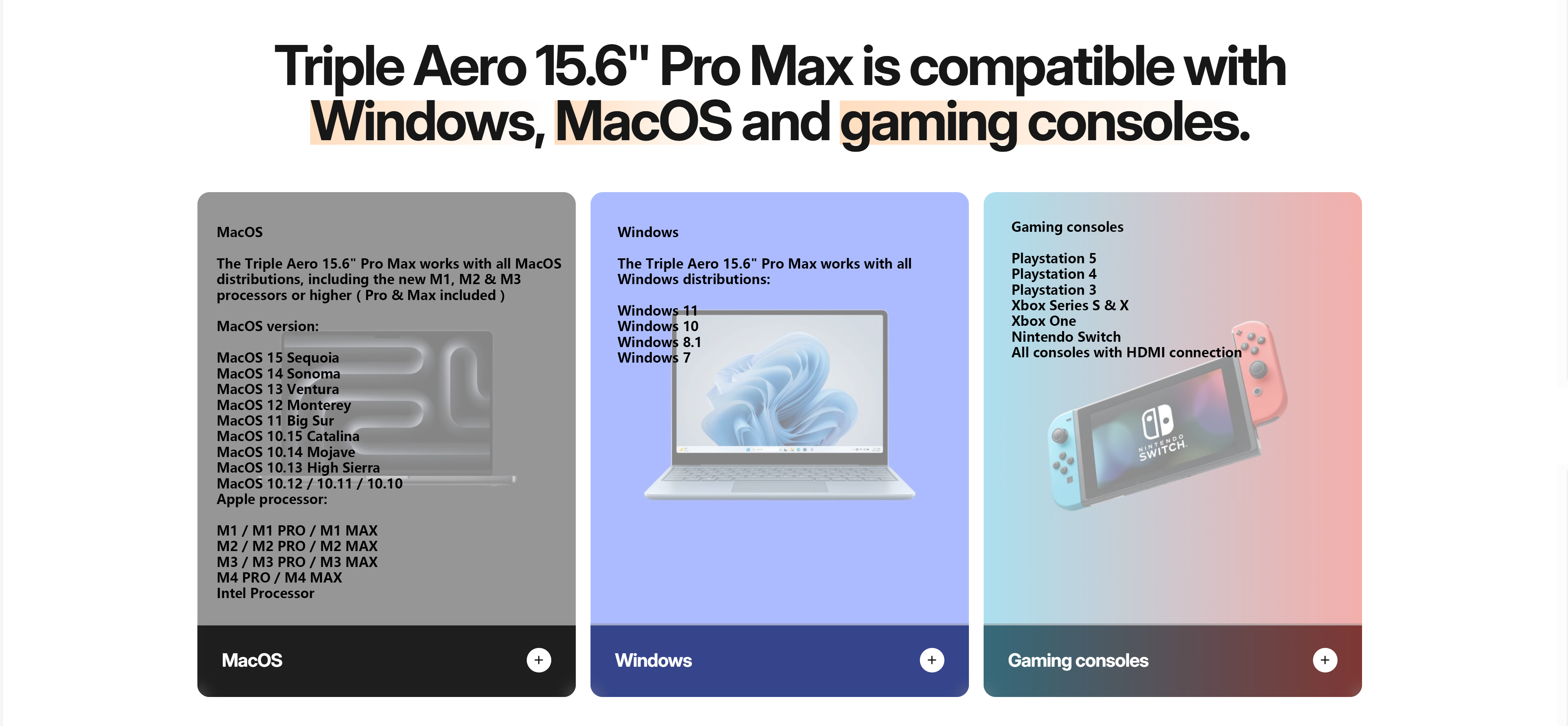 Crafted from premium forge, it features three 15.6-inch Full HD anti-backlit displays that easily connect to your laptop via USB-C.